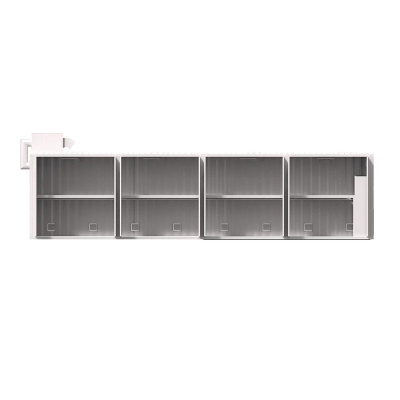 The VENTILATIO et exhaurit ratio componitur ex 4 evacuatione louvers et fistulae evacuatione multiplicia. Evacuatione louvers installantur intra scrinium, et anti-insectum et anti- rat rete instituitur intra louvers pro aere attractio. |